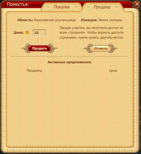 Продать можно только тот участок, на котором не расположено поместье. Он отображается на карте мира особым образом.